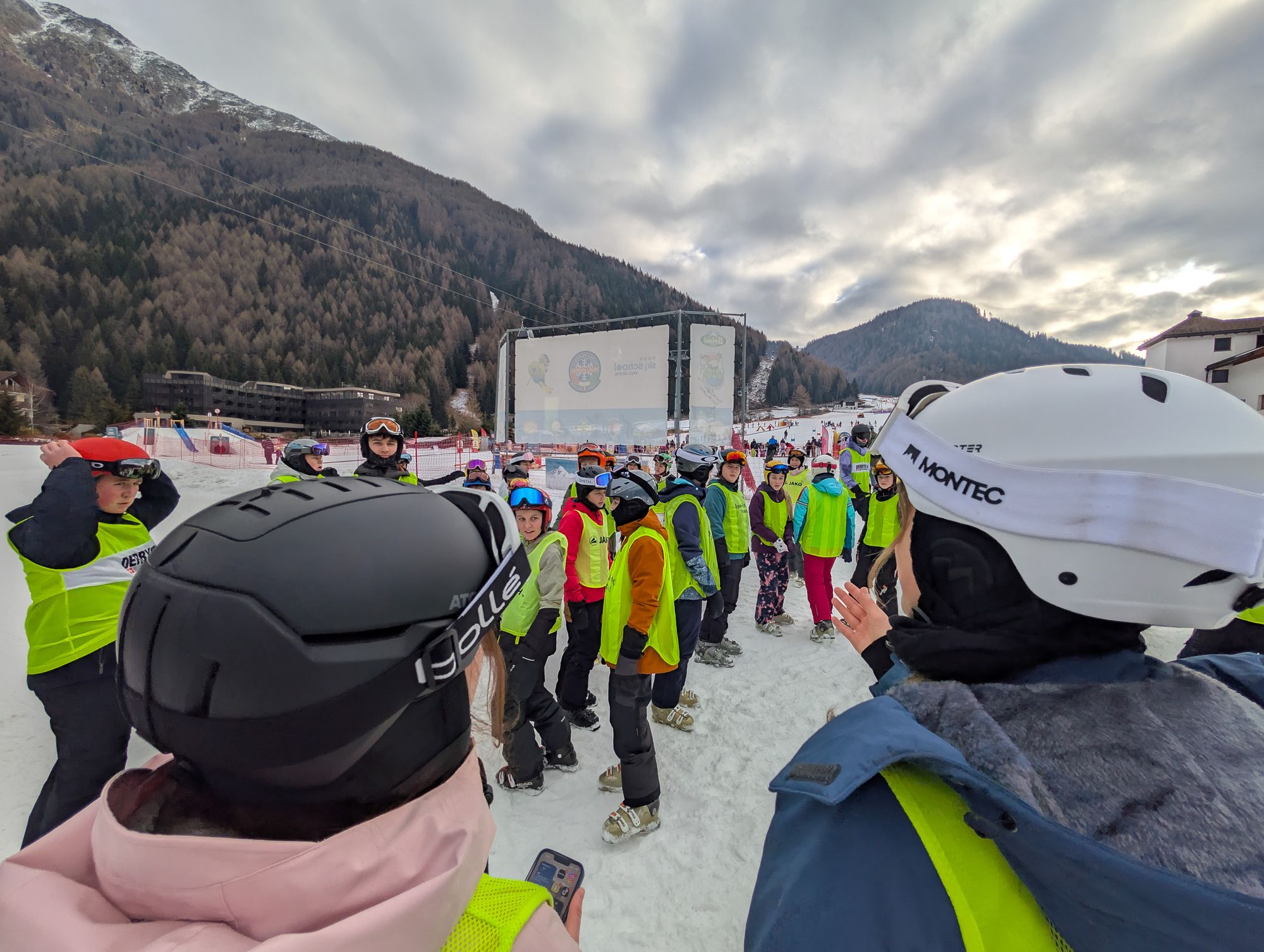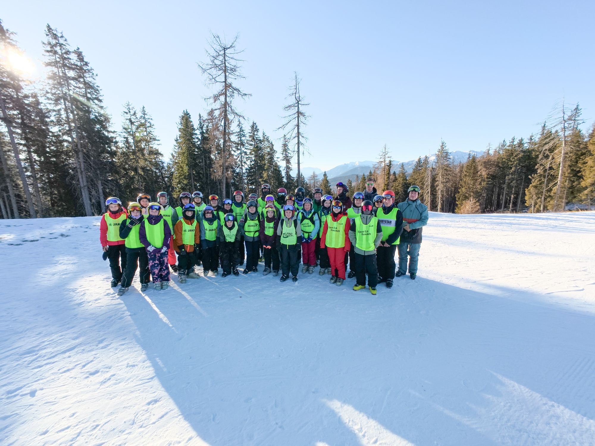 Am Morgen sind wir voller Lust und Laune in den Tag gestartet und haben uns fürs Frühstück fertig gemacht. Zum Frühstück gab es Brot, Brötchen, Früchte, Müsli und viele andere Leckereien. Nach dem Fühstück hat sich jeder noch ein Lunchpaket gepackt und gegen um neun kam der Bus zur Piste. Auf der Piste angekommen hat jeder seine Skiausrüstung ausgeliehen und uns wurde gezeigt, wie man bremst. Nach vielen Übungen sind alle mit den Gondeln auf den Berg gefahren und wir sind zusammen mit unseren Paten mehrfach die Piste heruntergefahren. Die Piste, die wir runtergefahren sind, war eine Blaue und wir sind auch mit dem Tellerlift den Berg hochgezogen wurden. Am Ende sind wir zusammen zurück zum Depot gelaufen und haben unsere Skiausrüstung wieder abgegeben. Die Skiausrüstung abzulegen war nicht für jeden ein Kinderspiel, doch am Ende des Tages sind alle heil rausgekommen. Danach sind wir wieder mit dem Bus zurück in die Unterkunft gefahren und haben uns ein bisschen ausgeruht. Anschließend sind wir dreiviertel sieben zum Abendbrot gegangen. Dort gab es Salat, Putengeschnetzeltes, Gnocchis und als Nachtisch ein leckeres Tiramisu. Zum Abend haben wir uns zur Tagesauswertung wieder getroffen und haben uns gegenseitig ausgetauscht, über Fortschritte gesprochen und unsere Skipullover bekommen. Der erste Tag im Skilager war für fast jeden ein voller Erfolg und sollte auch weiterhin ein tolles Erlebnis werden.